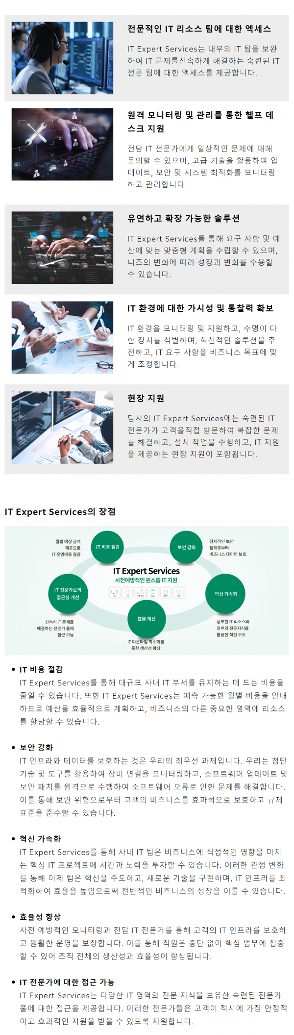 숙련된 IT 전문가들로 구성된 후지필름비즈니스이노베이션의 IT Expert Services 팀과 함께라면, IT 운영 관리의 번거로움을 덜어주는 신뢰할 수 있는 파트너를 갖게 될 것입니다.